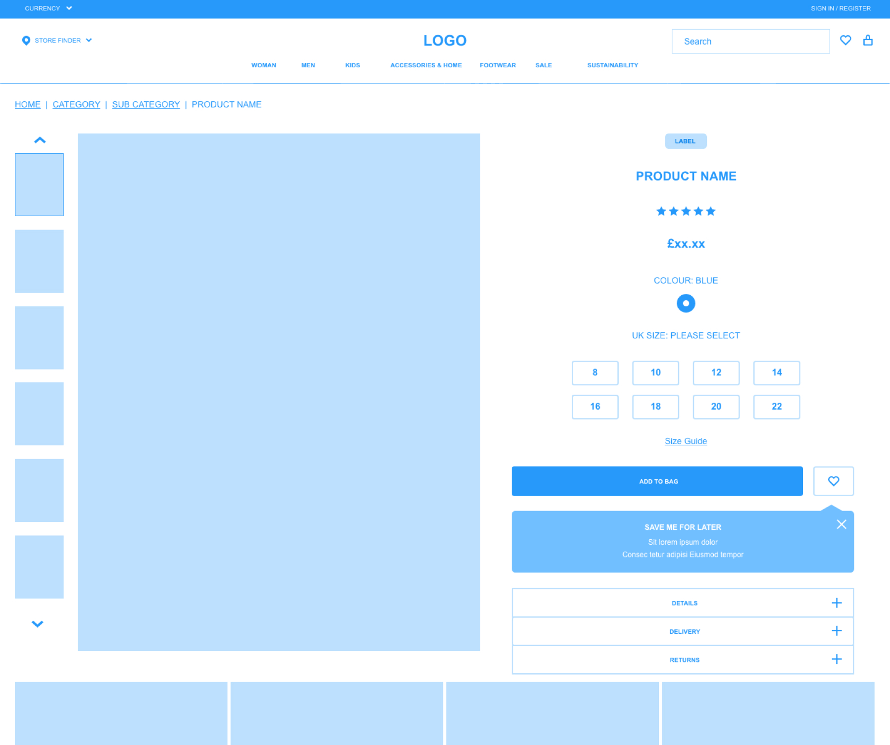 I started by mapping out the current user flow to identify possible areas of improvements and created a new user flow to reflect this. I then proceeded to wireframe the new user journey across all touch points, from homepage to checkout, taking both logged in/out users into consideration.